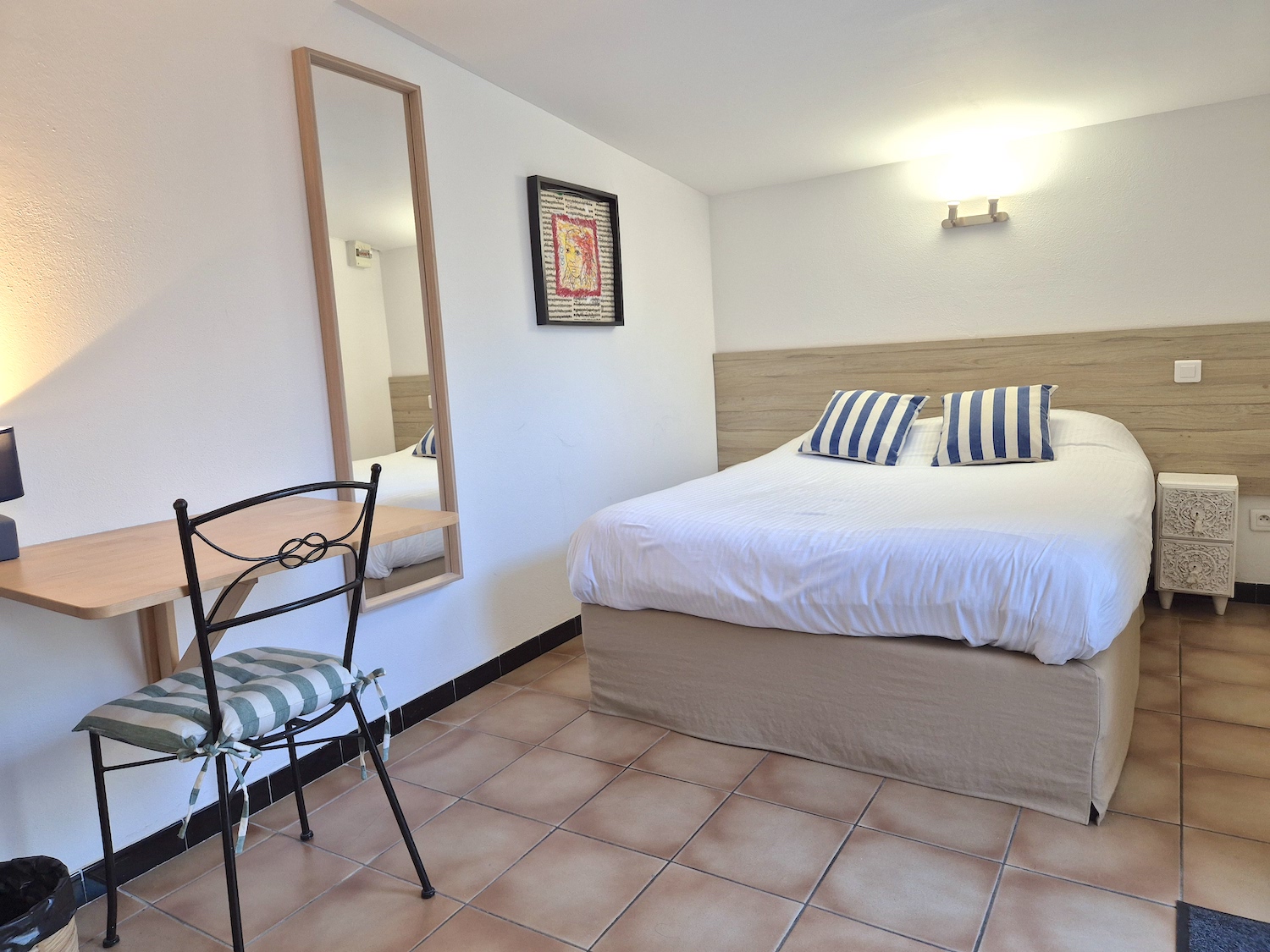Lors de votre voyage en solo au Lavandou, profitez de nos petites chambres single. D’une superficie d’un peu plus de 10 m², elles sont équipées d’un lit d’une personne (120 cm) et d’une douche dans la salle de bainsNous ne possédons malheureusement pas de chambres accessibles aux personnes à mobilité réduite.